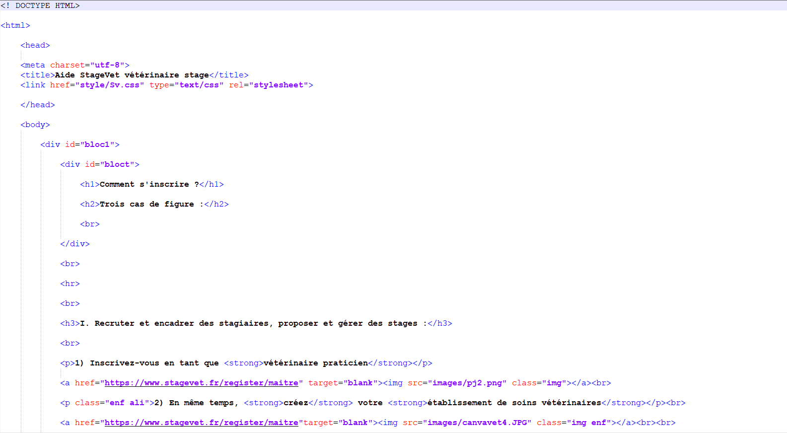 - Création d'une page d'aide pour aide les utilisateurs de StageVet.
