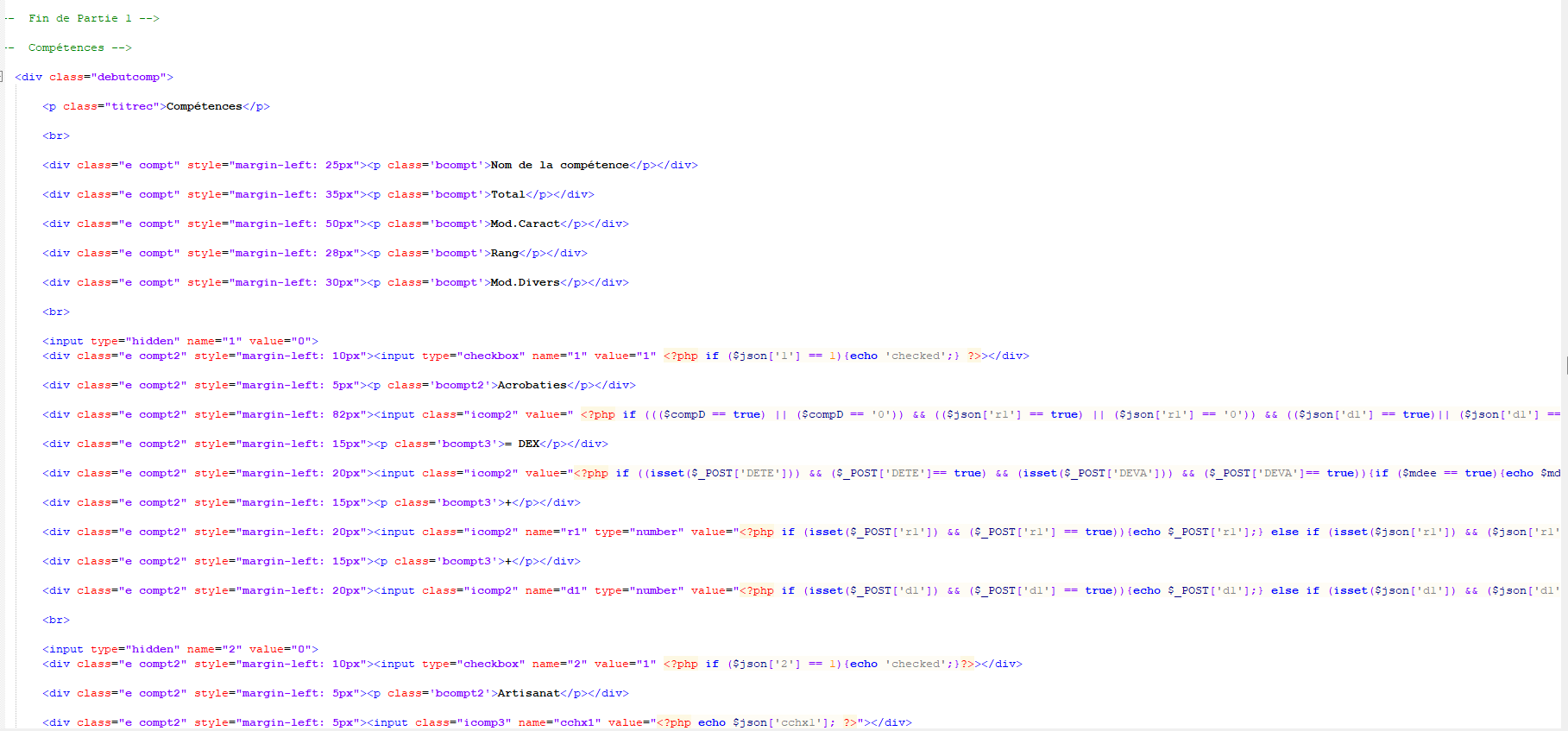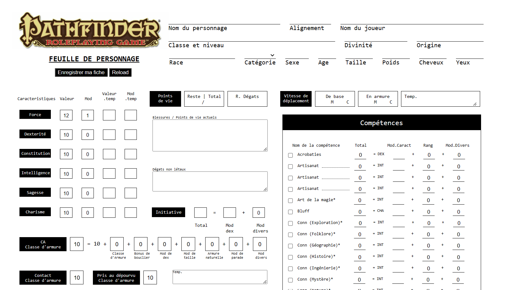 une fiche de personnage Pathfinder en Front-end et en Php ainsi qu'un fichier json faisant office de solution de stockage de données.
