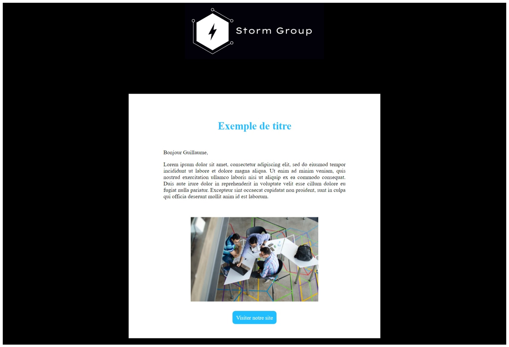 Voici le template du mail que nous avons réalisé pour le compte de Stormgroup